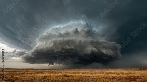 Prairie Storm Cell Huge cloud looming over field. Weather illustration, ominous sky
