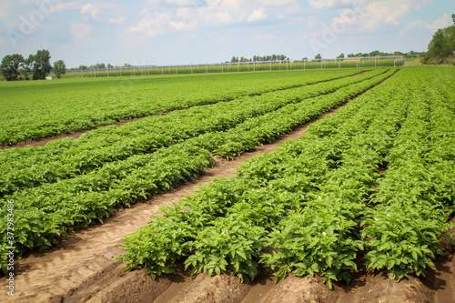 prächtig gedeiende Kartoffelpflanzen auf einem Kartoffelacker