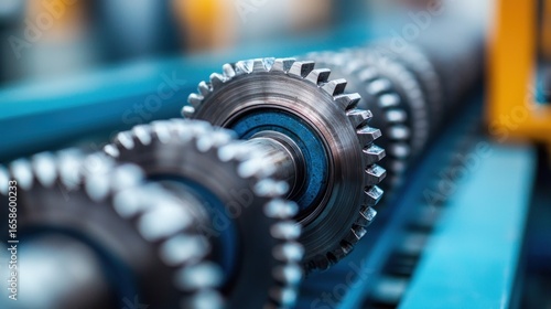 gear, metal, cog, machine, industry, factory, engineering, technology, industrial, manufacturing, mechanic, equipment, machinery, precision, work, steel, blue, closeup, detail, sharpened, texture, tool, component, system, mechanism, production, assembly, process, interlocking, rotating, part, element, hardware, innovation, design, construction