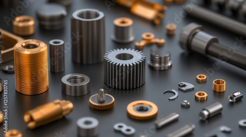 Precision-engineered metal components, featuring gears and fasteners, ideal for industrial machinery and mechanical applications, showcasing quality craftsmanship.