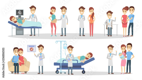 pregnancy, vector, set, ultrasound, test, pregnant, doctor, isolated, patient, antenatal, woman, illustration, cartoon, medicals, health, hospital, baby, clinic, children, care, mother, rest, background, screening, white, design, family, exam, visit, person, gynaecologist, collection, medicine, health care, happy, belly, broken, motherhood, expecting, maternity, newborn, icon, surgery, x-ray, childbirth