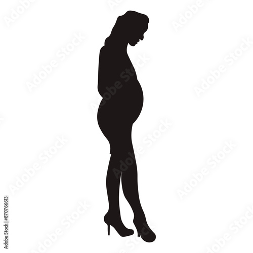 pregnant, woman, silhouette, illustration, maternity, pregnancy, motherhood, birth, mother, baby, foetus, female, black, isolated