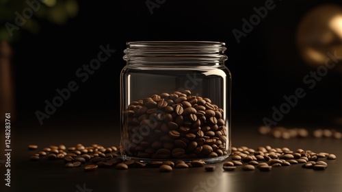 Premium coffee beans in a clean glass jar with studio lighting against a white background
