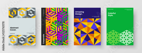 Premium corporate brochure A4 vector design illustration bundle. Minimalistic geometric hexagons handbill template composition.