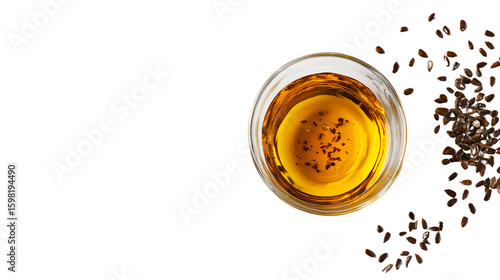Premium Sunflower Seed Oil and Seeds in Glass Bowl on White Background