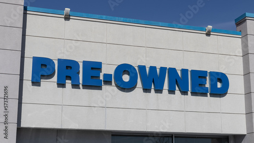 Pre-Owned vehicle banner at a used car dealership for internet or website.