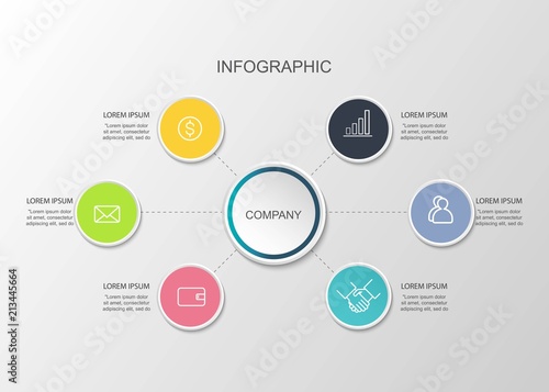Presentation creative concept business data visualization for infographic. With 6 circle options. Vector illustration.