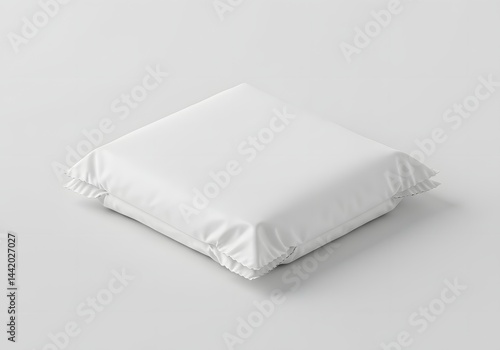 pillow, cardboard box, sitting, square, white, wrapped, clean, product, closeup, soft, sterile, minimal, studio, design, display, domestic, textile, material, object, indoor, resting, household, bedchamber, grey, neutral, commercial, mock, presenting, cushion, plain, simple, fabric, wrapper, covered, surface, tabletop, contemporary, modern, blank, pack, packaged, single, nobody, presentation, promotional, element