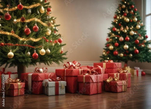 Presents and boxes stacked under the Christmas tree, gifts, Christmas tree, presents