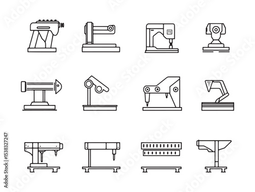 Press Brake Equipment Engineering Outline Style Vector Graphic