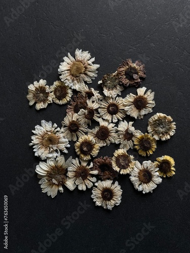 Pressed white flowers on black