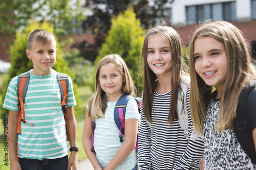 children, person, girl, book, school, 10, 11, backpack, bag, boy, casual attire, caucasian, cheerful, childhood, class, classroom, education, elementary, exterior, female, foreground, friendship, group, happy, junior, male, outdoors, outside, people, playground, portrait, preteen, primary, pupil, schoolyard, standing, student, kindergarten, friends, girl, teenage, three, 4