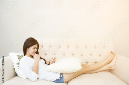 adult, asia, beautiful, mobile phone, couch, female, girl, happy, holding, home, lifestyle, living, message, mobile, nice, people, phone, pretty, room, sexy, sitting, smartphone, smiling, sofa, technology, thai, woman, young