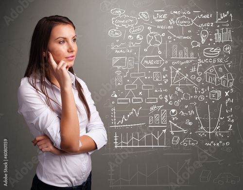 market, thought, rate, bar, power, business, bulb, plan, line, signs, symbol, blackboard, scheme, element, collection, currency, organisation, draw, thoughtful, brainstorm, board, statistic, financial, exchange, arrow, success, diagram, finance, graphic, stock, handwriting, calculation, idea, graph, icon, strategy, money, vignetting, idea, banking, chart, cloud, wireless, concept, woman, girl, female, young, thinking