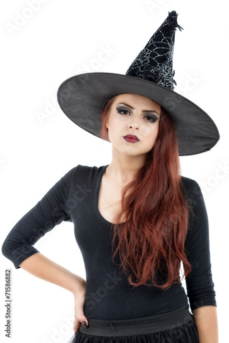 pretty young redhead witch, isolated against white background