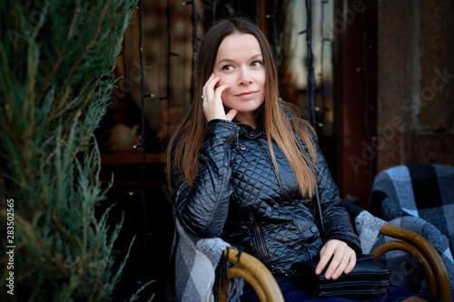 woman, female, beautiful, armchair, young, lifestyle, girl, happy, pretty, model, white, summer, attractive, people, to sit, beauty, outdoors, person, portrait, adult, style, face, brunette, smile, lady, vacation, outside, cafes, background, fashion, hair, modern, caucasian, happiness, cheerful, leisure, casual attire, relax, sitting, wall, wooden, holiday, chair, concept, sad, pensive, mood, emotional