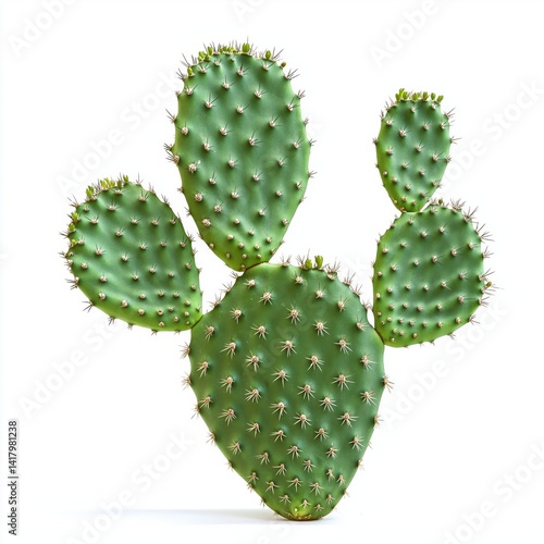 prickly pear cactus, with numerous small, sharp, dark-green spines, perfectly smooth and glossy texture