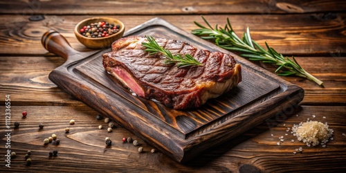 Prime ribeye steak displayed on a rustic wooden board, ribeye, steak, meat, food, gourmet, juicy, grilled, cooking, cuisine