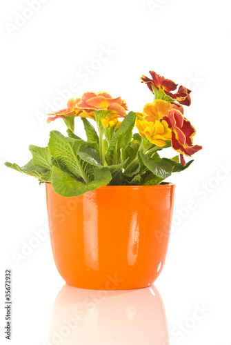 primrose, im, flowerpot, orange, yellow, flower, colourful, decoration, spring, green, red, close-up view, plant, primrose, primrose, refinement, pot, potted, ornamental plant, upright format