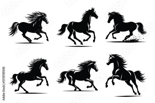 horse, animal, vector, silhouette, fast horse, illustration, black, running, wild, farm, pony, run, equestrian, gallop, animal, mane, mammal, cartoon, equine, speed, outline, nature, mare, mustang, tail