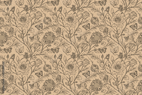 pattern, seamless, wallpaper, floral, flower, vintage, ornament, vector, texture, illustration, decoration, design, art, damask, leaf, textile, paper, retro, nature, decor, beige, swirl, old, ornate