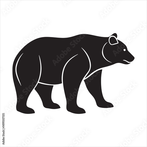 animal, mammal, walking, bear, illustration, graphic, outline, signs, silhouette, wildlife, zoo, beast, grizzly, big, icon, nature, symbol, vector, power, standing, logotype, drawing, hunting, art, wild, design, forest, clip art, badge, element, minimal, predator, monochrome
