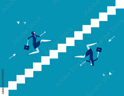 business, businessperson, businessperson, stair, concept, moving up, adult, balance, challenge, conflict, illustration, running, stepping, vector, speed, creative, idea, flat, abstract, arrow