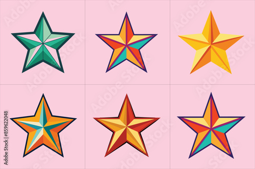 star, vector, symbol, icon, star, shape, decoration, illustration, design, set, pattern, art, colours, signs, element, gold, christmas, three-dimensional, yellow, pink, web, shiny, colourful, red, image