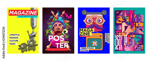 PrintNew Cover and Poster Design Template for Magazine. Trendy Vector Typography and Colorful Illustration Collage for Cover and Page Layout Design Template in eps10.