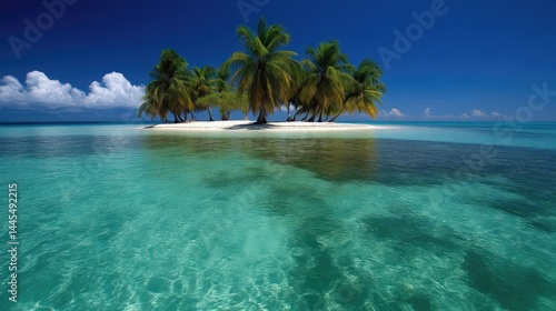 Pristine island paradise with turquoise water and palm trees