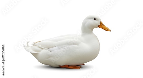Pristine White Duck with Vibrant Orange Beak on a Clean White Background.