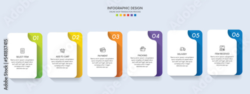Process of online shopping with 6 steps. Steps business timeline process infographic template