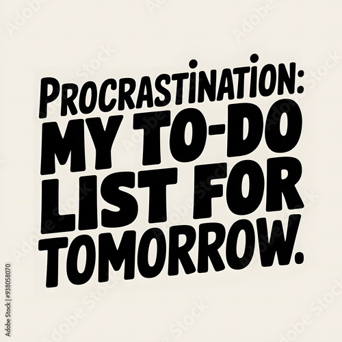 Procrastination: My To-Do List for Tomorrow – Bold T-Shirt Design with Playful Text Placement.