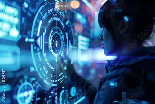Product officer with product lifecycle management tools, in product development office, product timelines and market data visualized. Product management tech, lifecycle analytics. , background blur