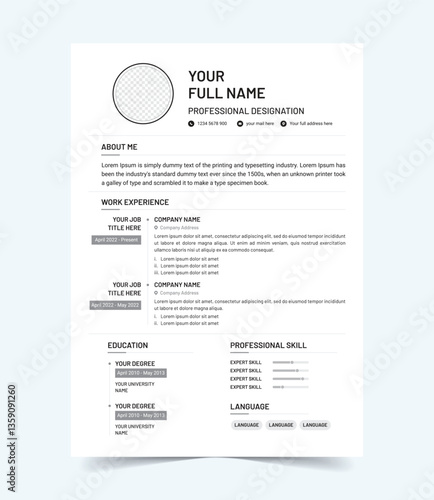 Professional CV resume template design and letterhead / cover letter - vector minimalist - black and white