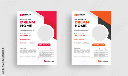 Professional flyer design template. Real estate flyer design layout. Home sale a4 leaflet design.