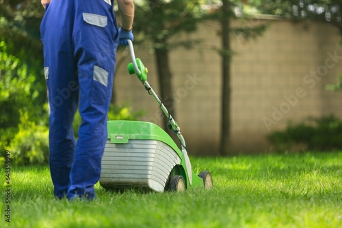 garden, lawn, men at work, equipment, residential, cut, electric, evening, technology, modern, field, man, job, gardening, gardener, labor