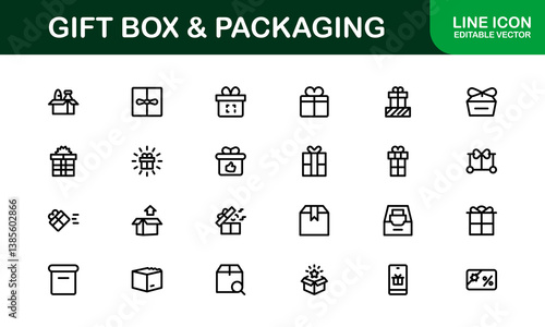 Professional Gift Box and Packaging Icon Set Vector Illustration. Most Useful Icons for Gift Wrapping, Boxes, and Packaging