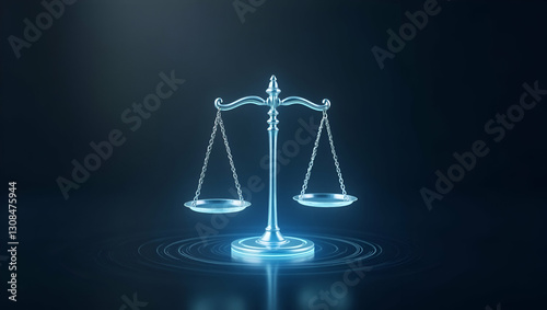 Professional leveraging holographic legal balance and icons for justice related decisions concept as Visualizing justice and decision making with futuristic legal tools in Photo Stock Concept and e