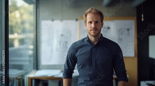 man, office, architecture, design, professional, modern, standing, workspace, interior, business, creativity, serious, sharpened, sketch, casual attire, shirt, background, confident, male, employee, corporate, teamwork, planning, project, contemporary, environment, indoor, portrait, individual, young, manager, idea, concept, innovation, career, person, adult, stylish, elegant, relaxed, friendly