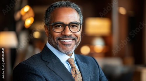 Professional Man with Glasses in Elegant Indoor Setting Smiling