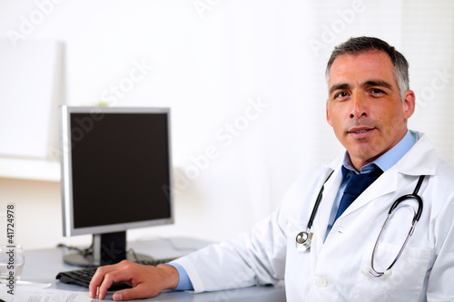 adult, background, care, career, clinical, company, computer, copy, copy space, corporate, disease, doctor, guy, hand, health, healthy, hispanic, hospital, keyboard, latin, looking, male, man, mature, medicine, man, monitor, nurse, office, patient, practitioner, professional, senior, sick, sitting, space, specialist, stethoscope, surgeon, treatment, uniform, using, water, wellness, work, working, workplace