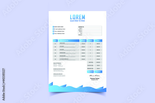 Professional Minimalist Corporate Business Luxury, Modern, Elegant, Invoice design template vector illustration bill form price invoice. Creative invoice template vector. business stationery design.