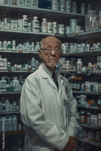 Professional Senior Caucasian Pharmacist in Pharmacy