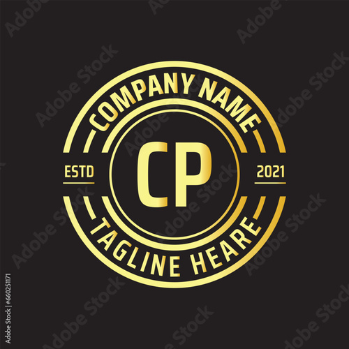 Professional simple Letter CP Circle Luxury Gold Color Vector Logo Template