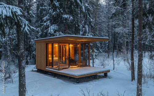 Professional stock photo of a Small Wooden Cabin in the Middle of a Snowy Forest
