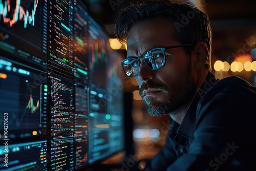 trading, stock exchange, monitor, investment, trader, business, finance, economy, stock exchange, financial district, city lights