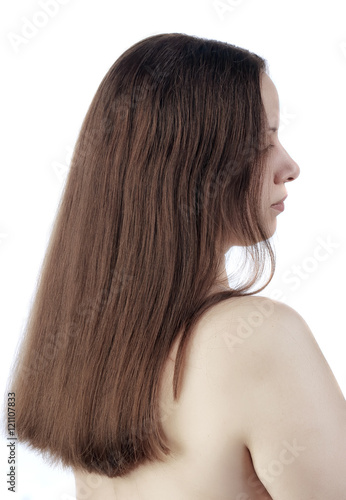 adult, background, bare, beautiful, beauty, brown, brown-haired, care, chestnut, closeup, hair, haired, indoor, long, naked, 1, people, posing, portrait, profile, pretty, sensual, sexy, shot, shoulder, smooth, standing, straight, studio, texture, view, white, white skin, woman, young