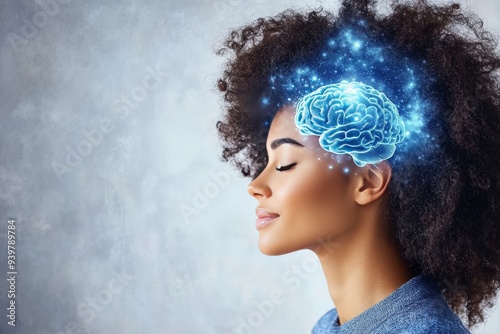 Profile of a woman with glowing blue neural elements symbolizing the power of human thought and creativity in a vibrant conceptual environment