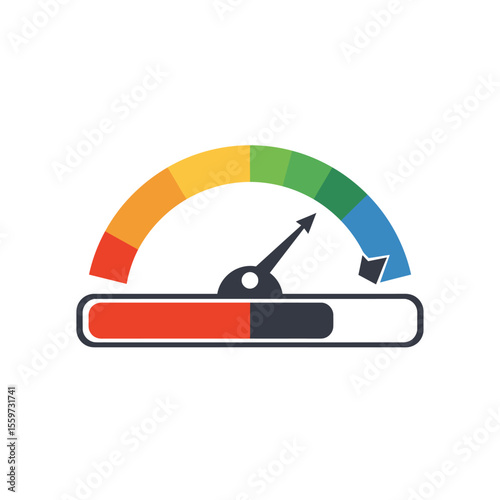 Progress bar with arrow icon in flat style. Meter gauge vector illustration on Risk level sign business concept.